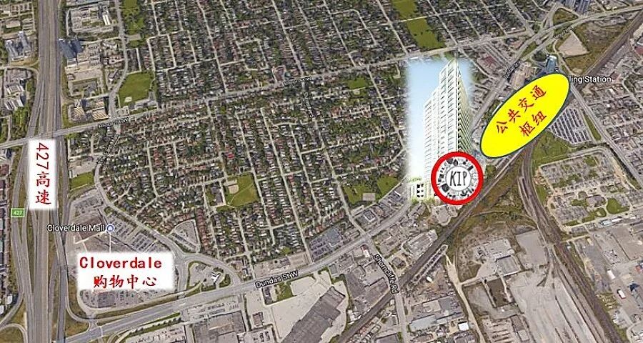 不但紧邻公共交通枢纽,驾车上高速427,购物中心 cloverdale mall 也仅仅2分钟!