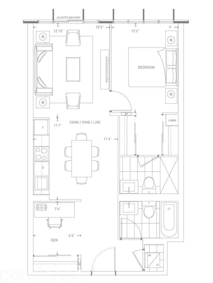 3.2 正东 ,611尺 1B+D 两个全卫生间, Den可以住人 , 不到65万