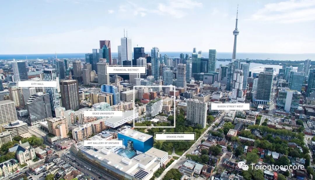 多大南门,紧邻OCAD大学。 靠近多伦多市政府,极为方便 地点。 Tridel 建造, 2019年夏天交房。