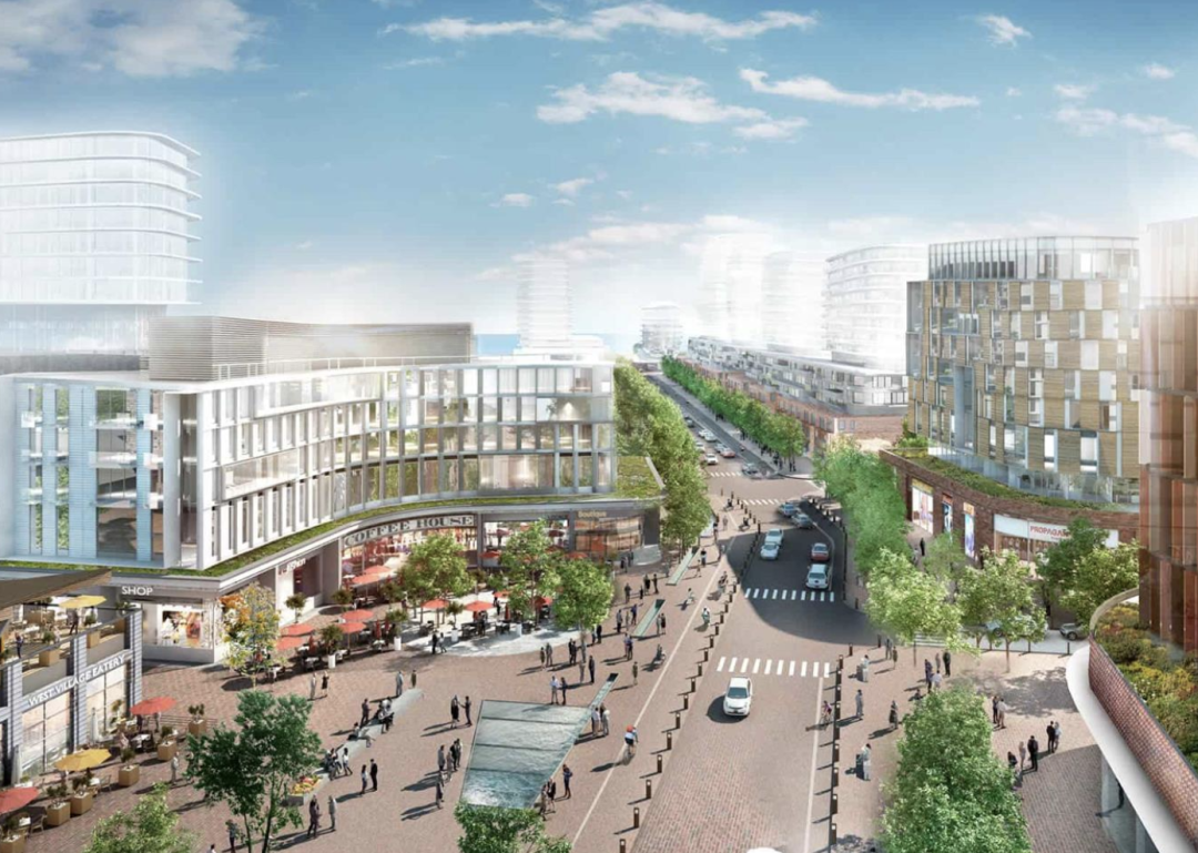7. 重新规划Lakeshore Road West,开一條主要街道,反映了社區東邊和西邊的街景,穿插着树木和聚集空間